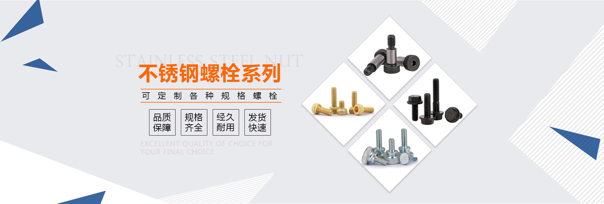 百星五金主要銷(xiāo)售:奧氏體不銹鋼、馬氏體不銹鋼、雙相鋼、超級(jí)雙相鋼、耐高溫不銹鋼、防腐蝕不銹鋼、哈氏合金、高強(qiáng)度合金鋼、銅材、鋁材、鈦材、塑膠、尼龍等材質(zhì)的標(biāo)準(zhǔn)緊固件以及非標(biāo)緊固件。核心產(chǎn)品:內(nèi)外六角、機(jī)絲、自攻、平彈墊、螺母、油塞、各種組合螺絲及特殊訂制螺栓等,表面處理可做環(huán)保鋅、環(huán)保鎳、熱浸鋅、達(dá)克羅、氟碳烤漆等,產(chǎn)品廣泛應(yīng)用于通訊、電力、風(fēng)能、地鐵、建筑、石化、船舶、閥門(mén)管道及機(jī)械設(shè)備等行業(yè)提供高品質(zhì)的配套服務(wù),質(zhì)量穩(wěn)定,久經(jīng)考驗(yàn)。
